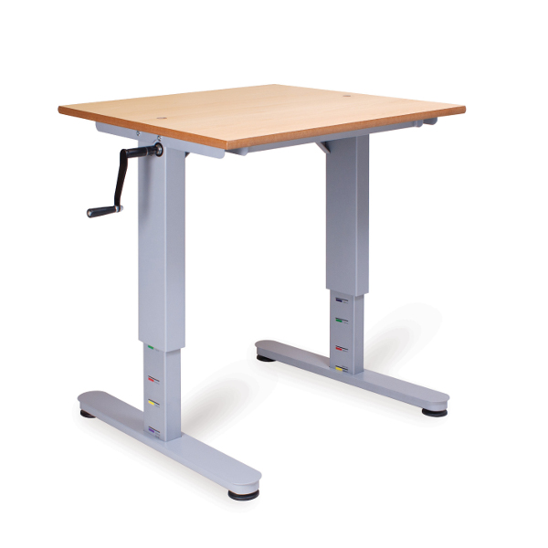 Effective in office environments and educational workplaces, the tables can be adjusted by a crank handle from the side of the frame or the top of the frame.